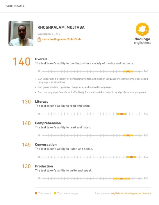 This course is designed for individuals planning to take the DET (Duolingo English Test) and our Qualified Instructor (his Score: 140) aims to optimize the test takers' performance within a month. It is suitable for test-takers seeking to understand and apply effective strategies and templates within the context of an AI-scored examination, ensuring the best possible results, Specifically in the "Production" Subscore.