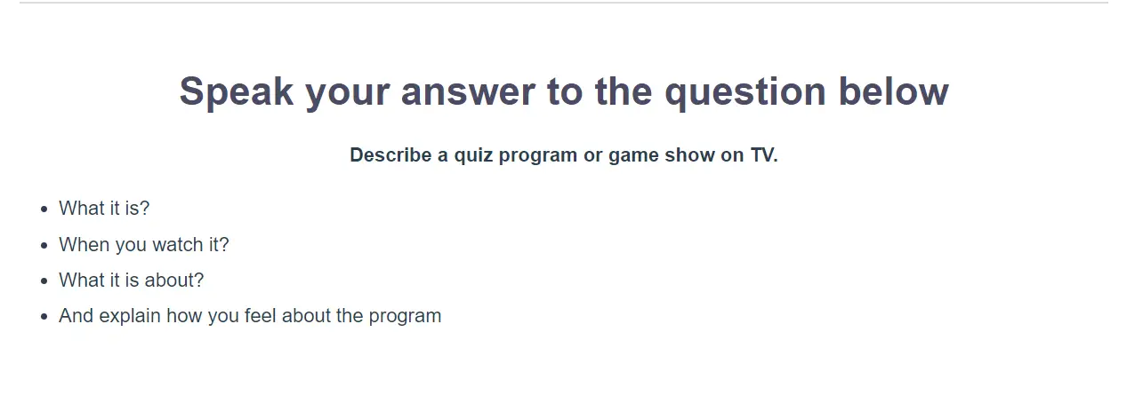 متن سوال روی صفحه نمایش داده میشود و شما باید با صدای رسا و به صورت روان در مدت حدود 90 ثانیه پاسخ دهید.